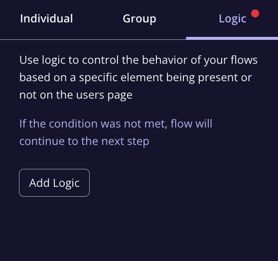 While the Flow Logic feature offers great flexibility, it’s important to note a few key points:- Multiple Steps Required: To use Flow Logic, your flow must contain more than one step, as the logic will need to guide users to a different step based on their interactions.